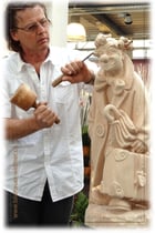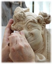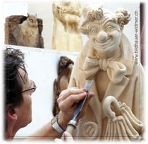 Die nachfolgenden Bilder sind anlässlich dem Showschnitzen im Gartencenter Meier, Dürnten im August 2011 entstanden. Dort habe ich am 81 cm Clown gearbeitet.